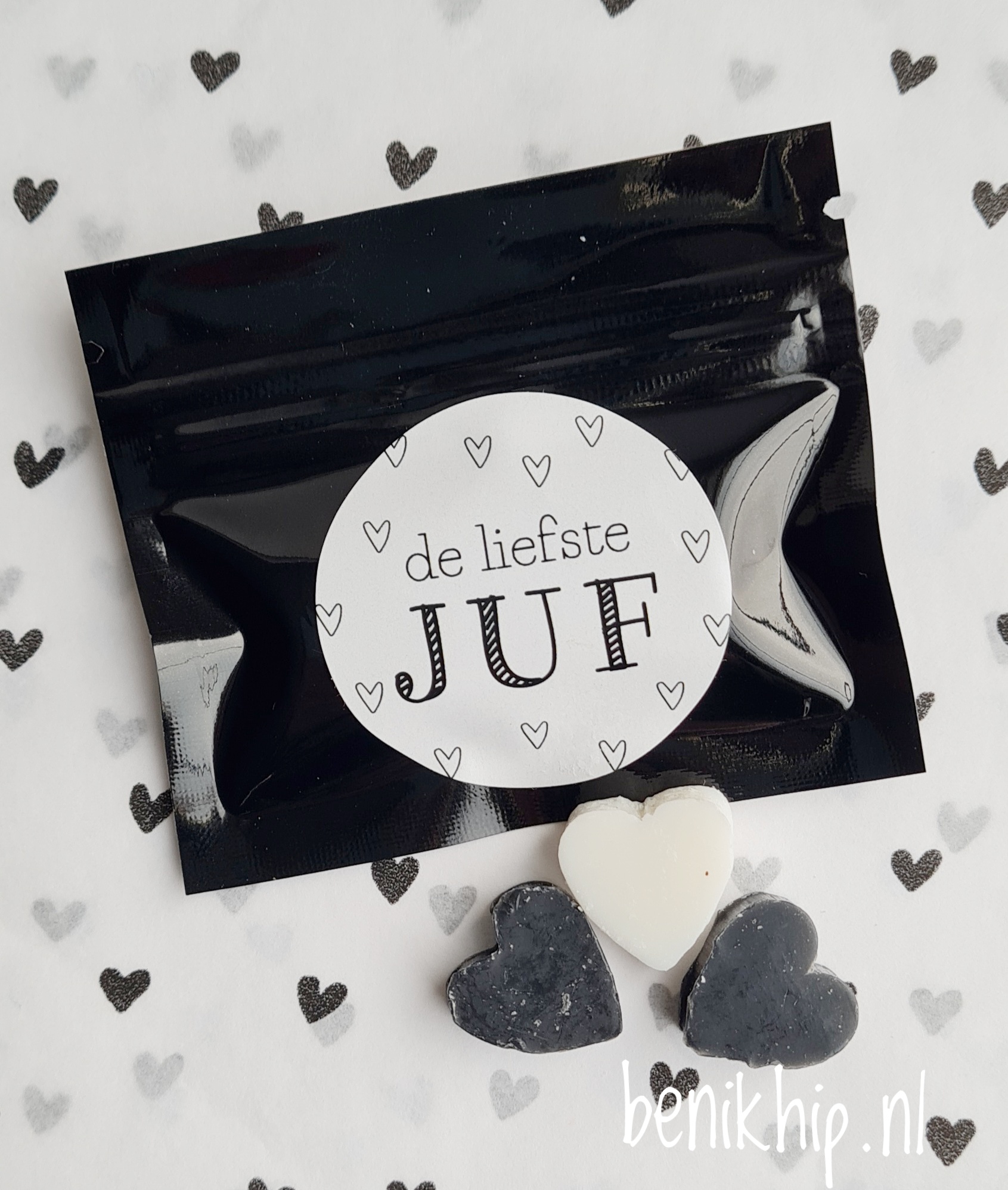 Het zwarte zakje bevat 3 kleine hartjes zeepjes