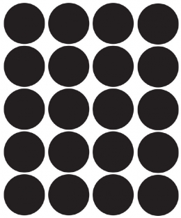De stippen zijn 3 cm doorsnede, er zitten er 20 op een vel.